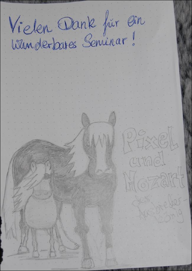 1. Erwartungen vorher Neugier; keine Vorstellung, wie das ablaufen würde; eigene innere Vorsicht (nicht Angst) vor Pferden, aber Vorbelastung durch ein paar Erlebnisse aus der Jugend; Interesse, die Pferdesprache kennenzulernen. – Für meinen Sohn….. Keine Vorstellung, Erklärung durch Mama. Egal. „Mach mer mit.“